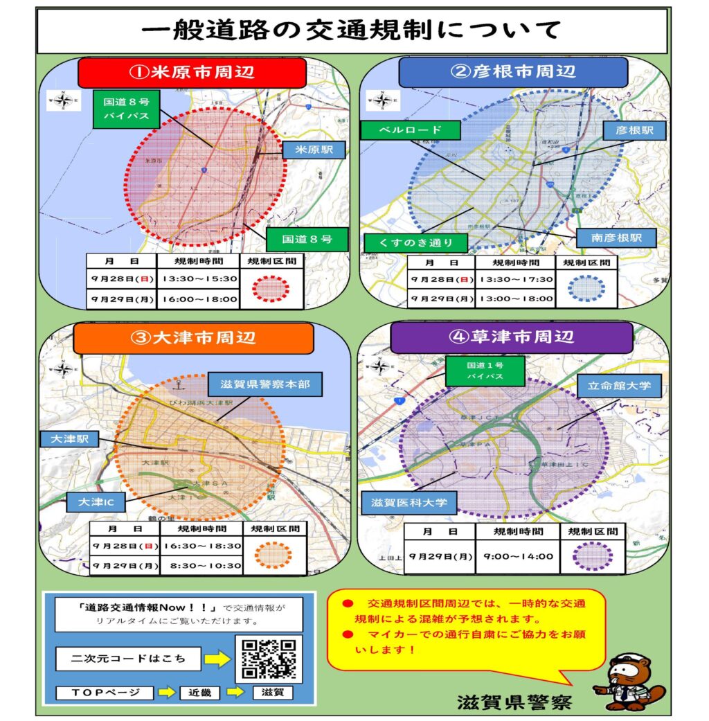 「わたSHIGA輝く国スポ・障スポ」の開催に伴い、28日(日)は会場周辺道路で交通規制が実施されます。