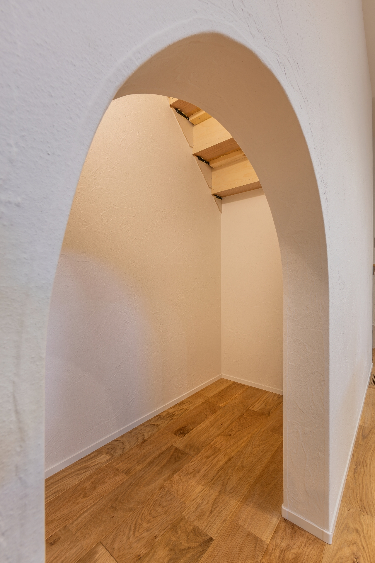 玄関横のシューズインクローゼットやパントリー、寝室などに適材適所のの大型収納を設置しました。