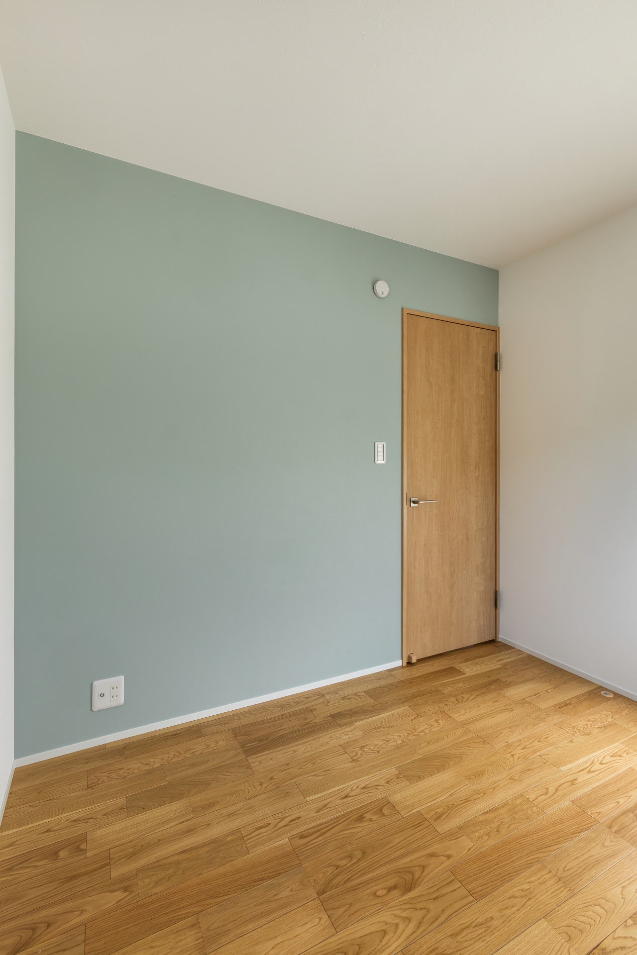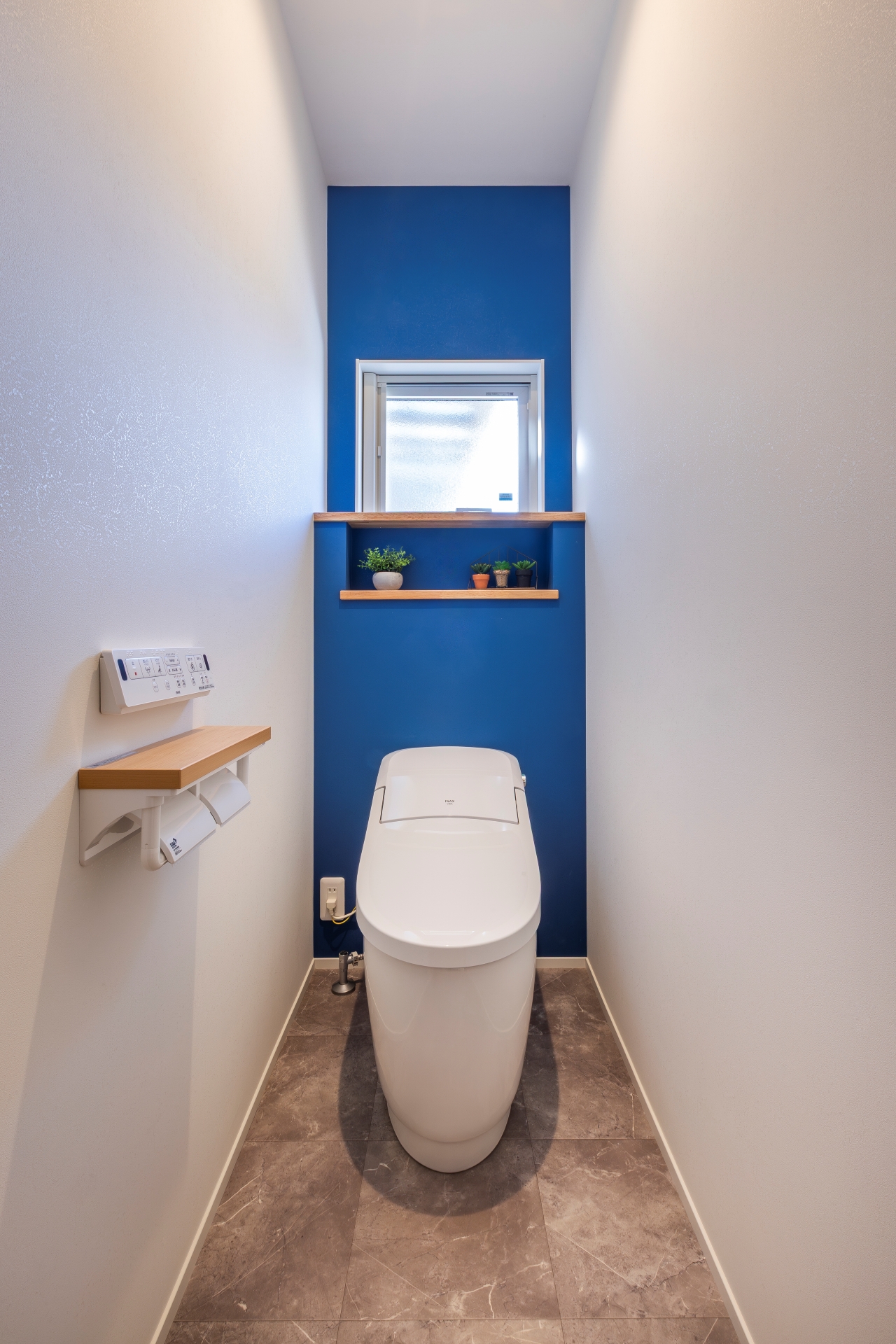 ナチュラルな雰囲気の内装に、ブルー系のアクセントカラーでおしゃれな空間が広がります。