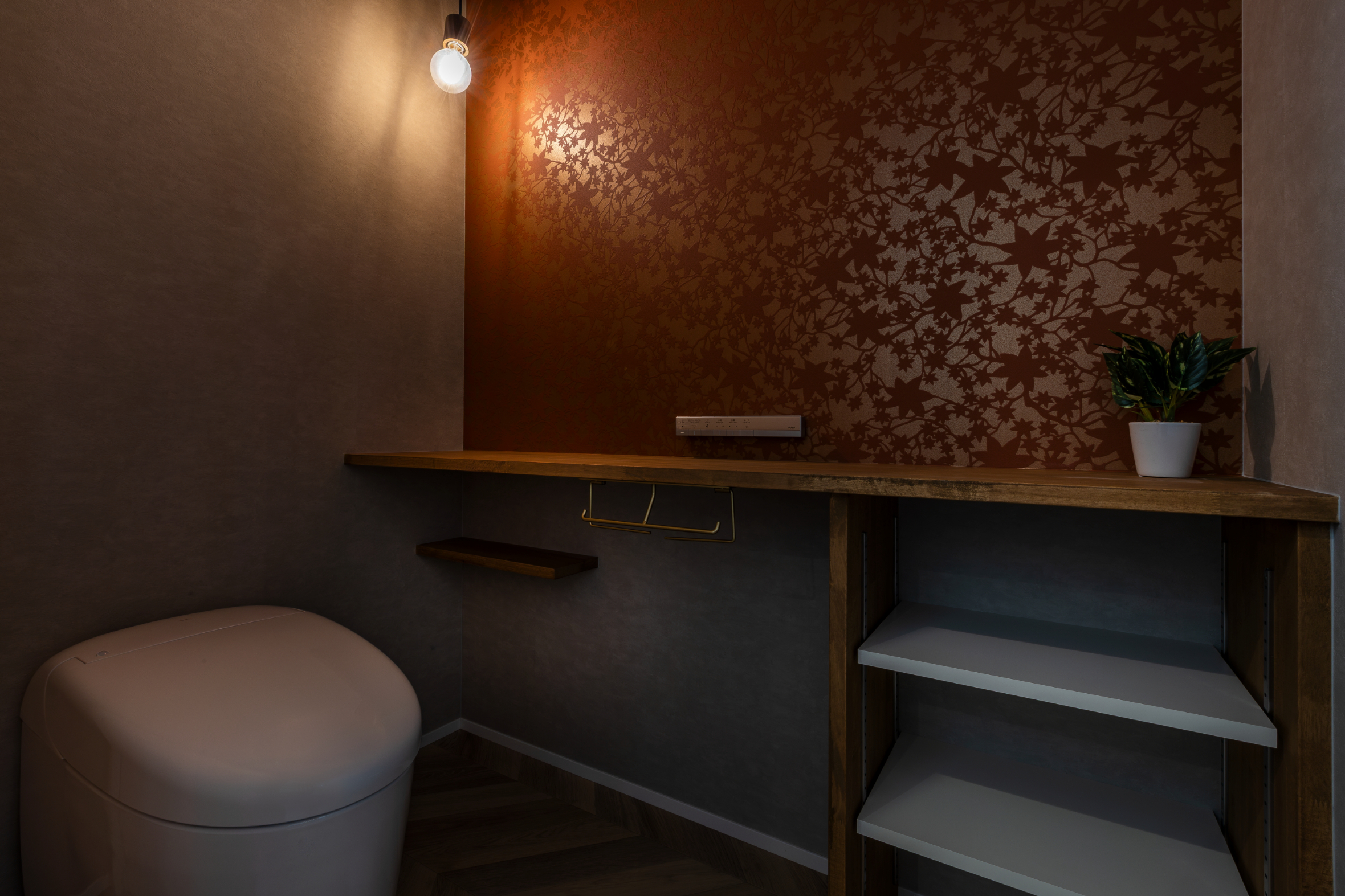 少し広めに設けたトイレは、ご主人のこだわりが随所に詰まった空間。