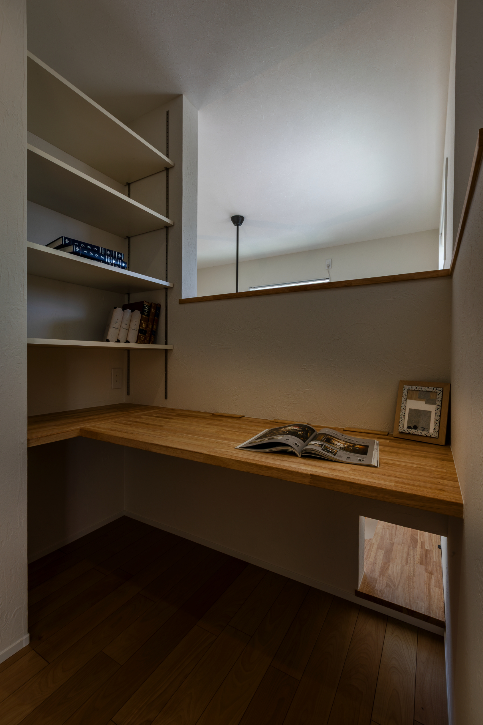 掘りごたつ式のスタディーコーナーは、足を入れて座れるため長時間でも快適に使え、くつろぎと作業、どちらも叶う多目的スペースとなっています。