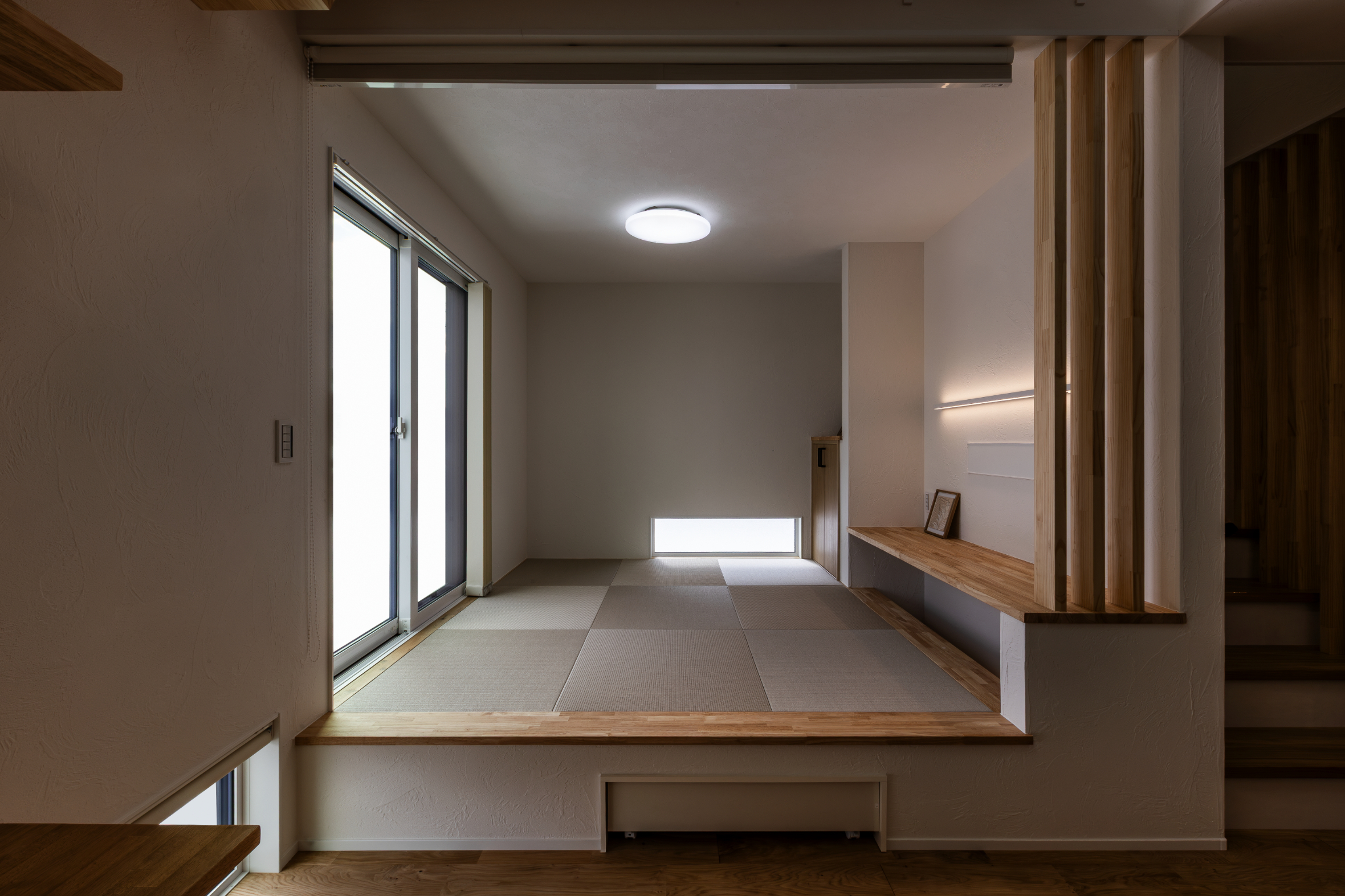 LDKの一角に設けた小上がりのタタミスペースは、くつろぎの場としてはもちろん、家族がそれぞれの時間を過ごせる心地よい空間。