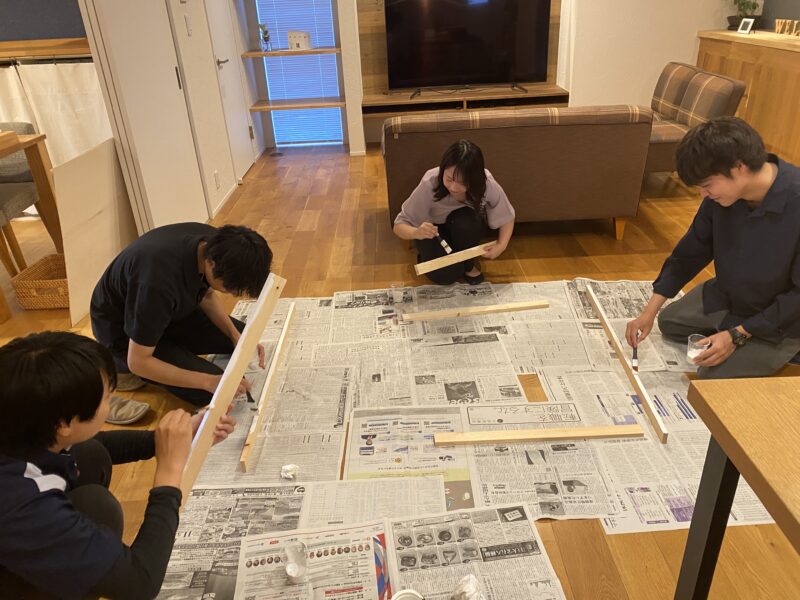 みんなで何かを塗っております!