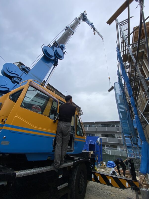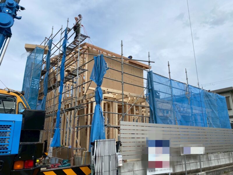 大工さん達の素晴らしい連携プレイであっという間に家のカタチになる日、M様にも記念の日となりました。