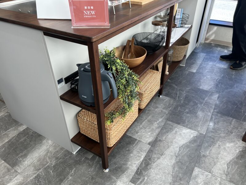 キッチン前のフロント収納も今までのイメージとは違い本体との一体感もあり