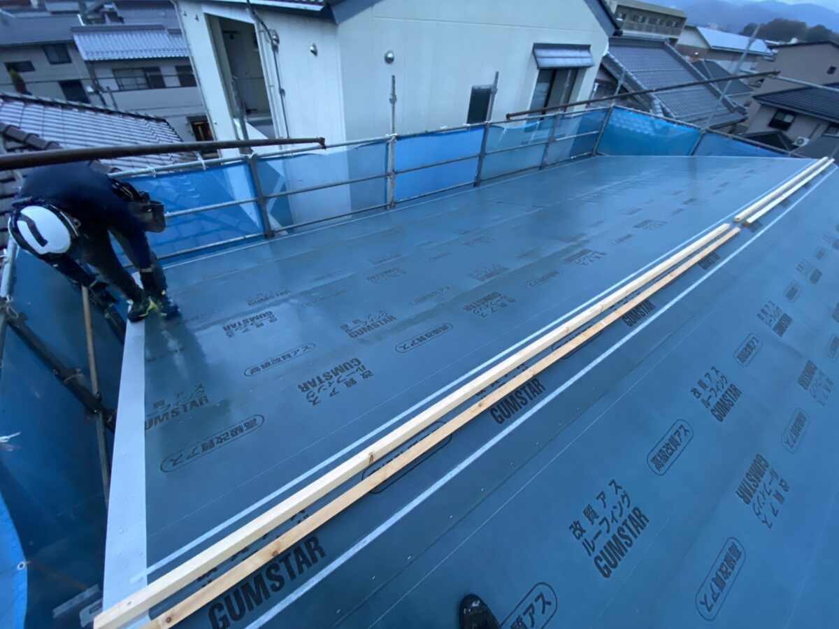 奇跡的にルーフィングが貼り終わった直後の雨でした