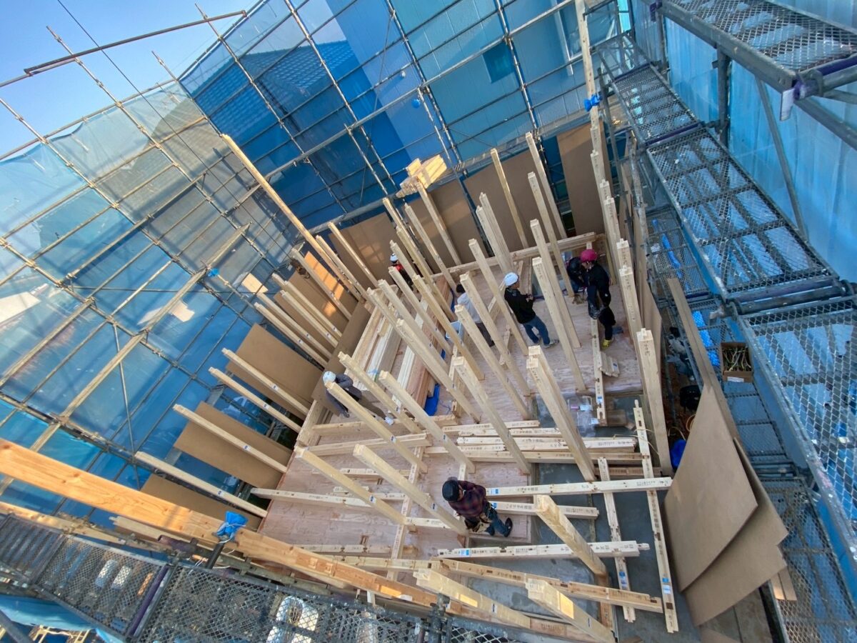 上棟、朝から作業を進めていき一日で建物の形が見えきます