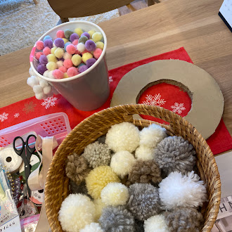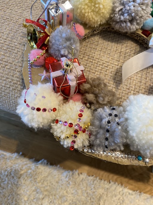 リースのもこもこは毛糸をくるくるしてスタッフの手作りです。