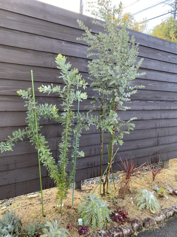 今年の春に植えたミモザは、当初ひざ下くらいの高さ。