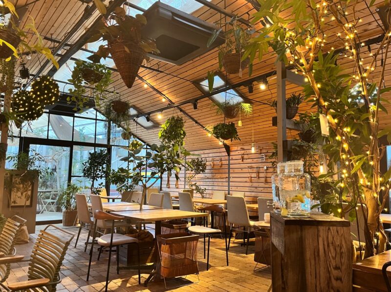 併設されているカフェでゆっくりしたのですが、植物に囲まれていて