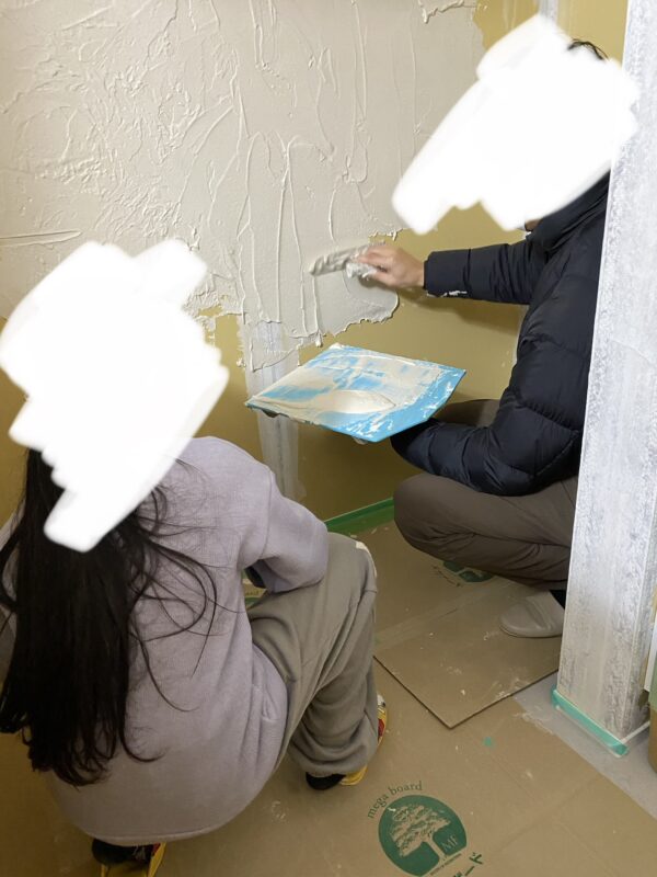 左官屋さんからレクチャーを受けいざ実践