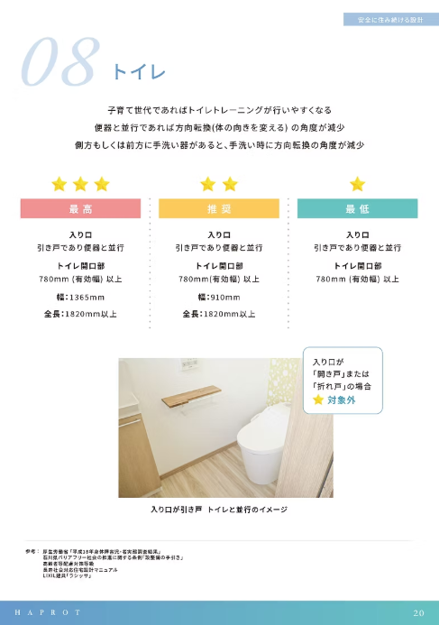 トイレの入り口に対する位置関係や建具の種類、開口幅など